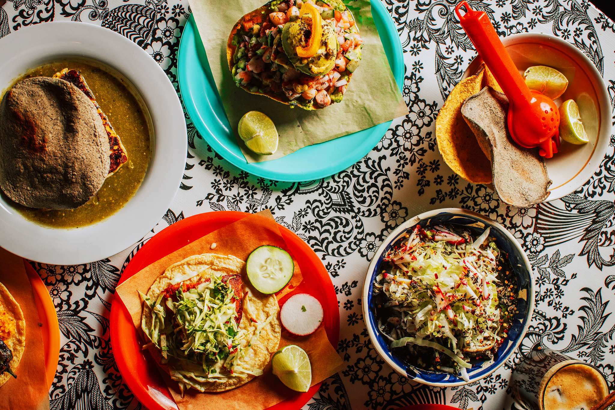 We stick to tradition where it matters most: nixtamalization—because corn is not an ingredient here; it’s the foundation. The same corn becomes hominy for pozole and masa for tortillas, made the hard way because the hard way tastes like home.